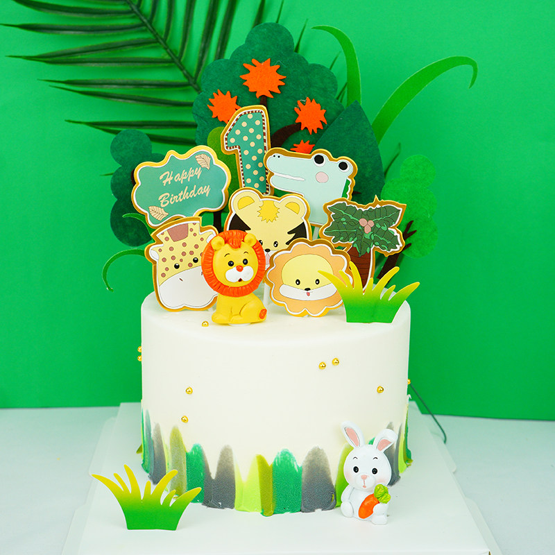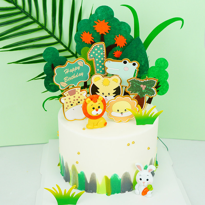 Special birthday cake decoration decoration card plug-in children lion little pig dog cartoon animal card