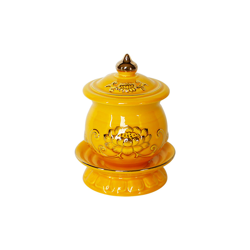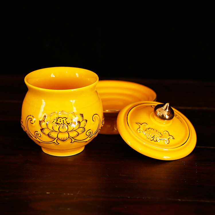 A section A yellow water supply cup for the Buddha's former small number Guanyin Bodhisattva Sacred Water King Gongchaung, dedicated to white porcelain color