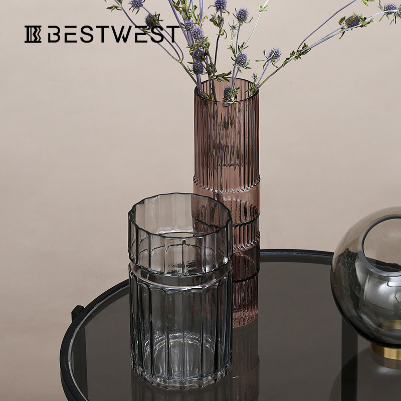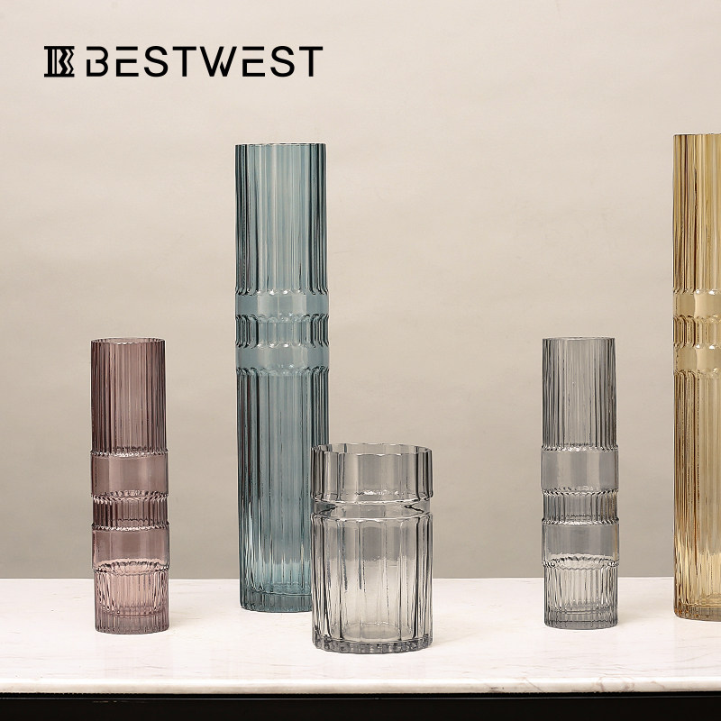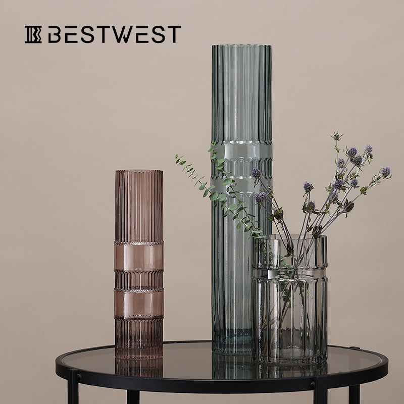 BEST WEST bamboo high glass vase ornaments Modern simple living room transparent flower arrangement bottle decoration ideas