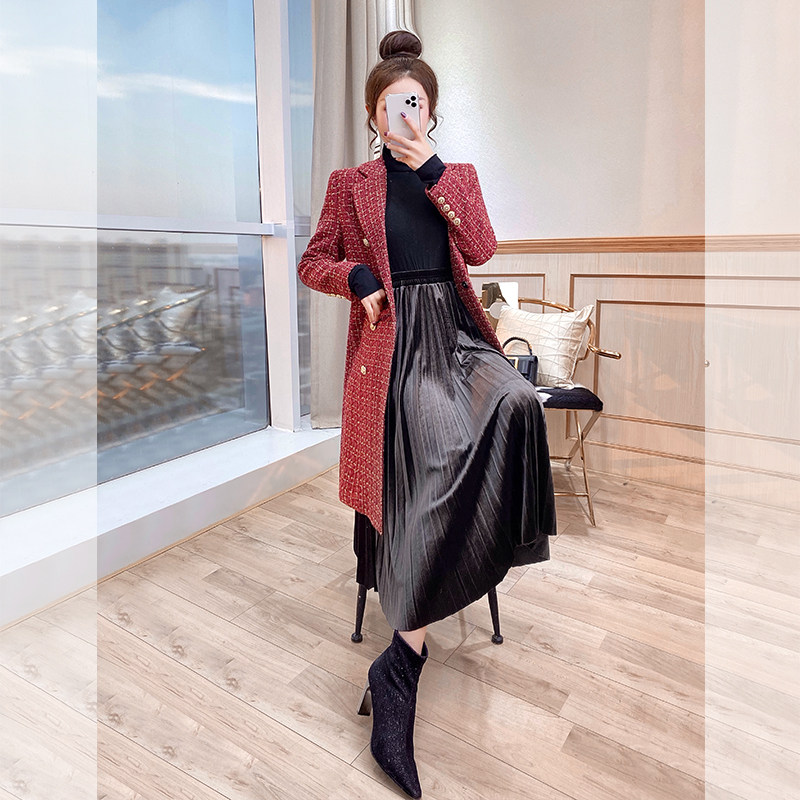 Woolen coat windbreaker 2022 new women's winter plaid mid-length version temperament plaid red suit coat
