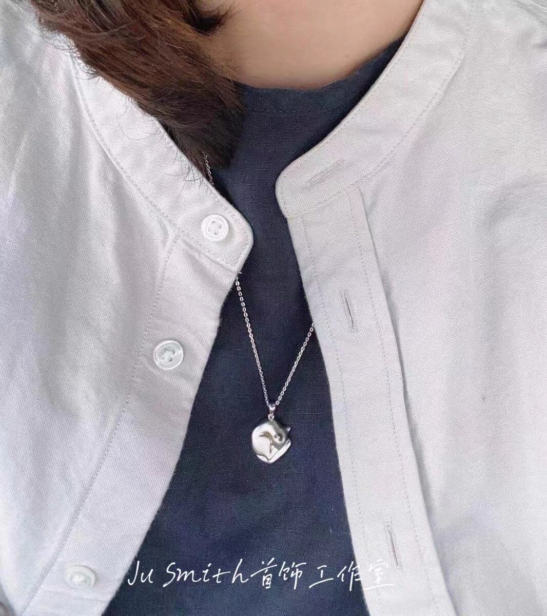 Ju Smith Original Jewelry Cat Lady Series Cat Winter Silver Plated 18k Platinum Necklace