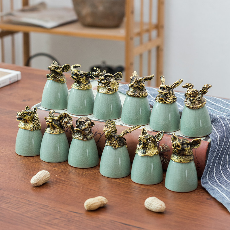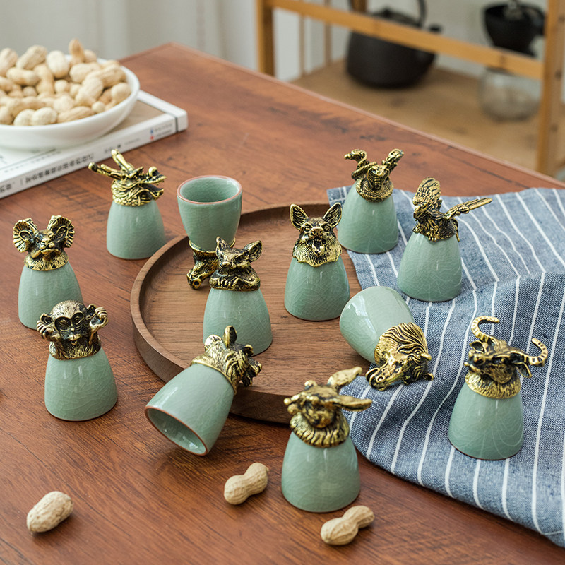 twelve twelve 12 zodiac kilo kiln ceramic wine with golden silver color ice cracking imitation ancient traditional featured small wine glass upscale suit