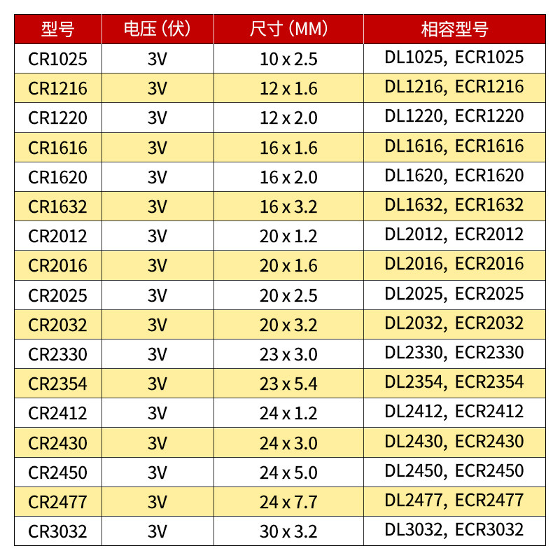 CR2032 2 CR2032 5 CR2032 5 CR2032 2 CR2025 CR2025 5 CR2025 (SFC)