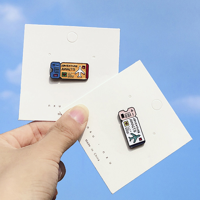 Plane ticket brooch Boarding pass badge Cute couple student clothes Pin buckle pin corsage bag pendant accessories