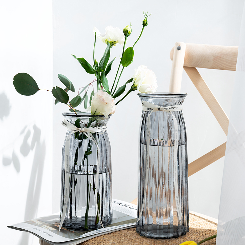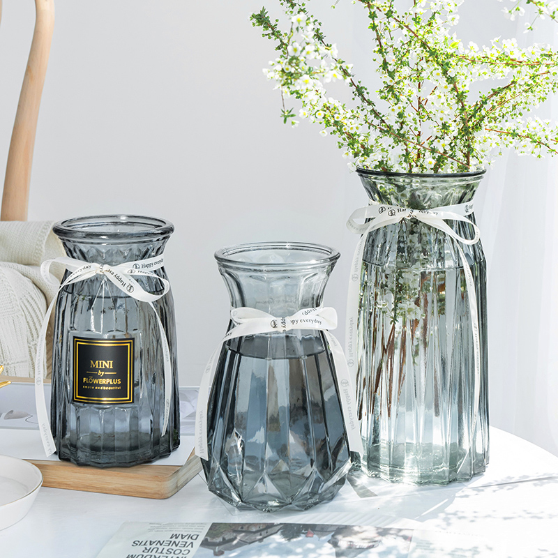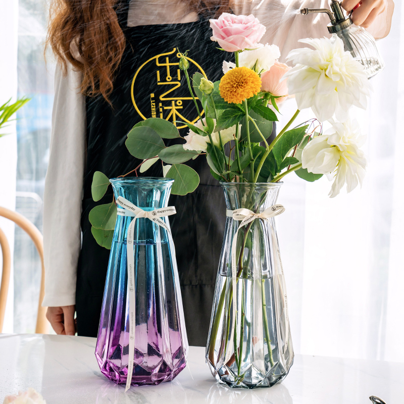 Special glass vase transparent water peels rich and expensive bamboo lily silver willow winter green vase living room flower arrangement European-style pendulum