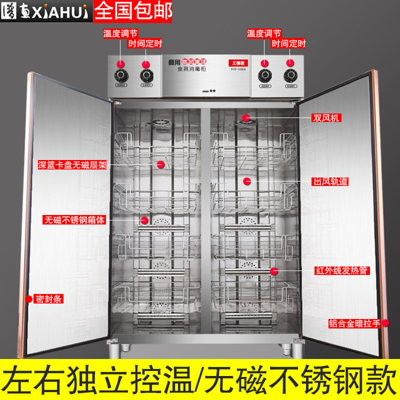 Cabinet Commercial High Temperature Stainless Steel Cutlery Bowl Tray Cabinet Hot Air Circulation Large Capacity Double Door Canteen Vertical Single Door