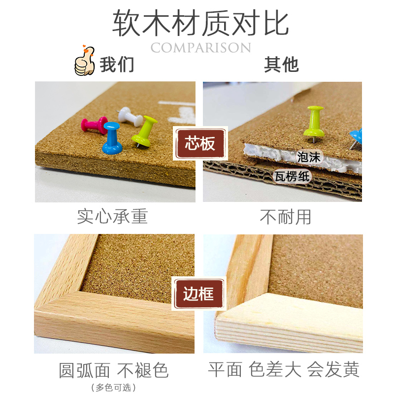 Clear large size cork board Wooden frame hanging wall nails Photo wall advertising display board hanging combination office plan bulletin board promotion 80*120