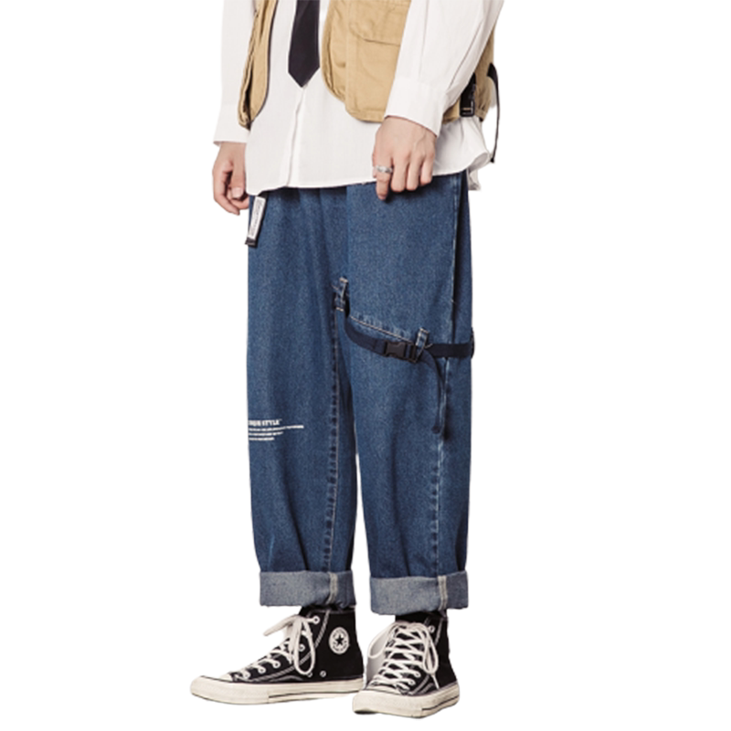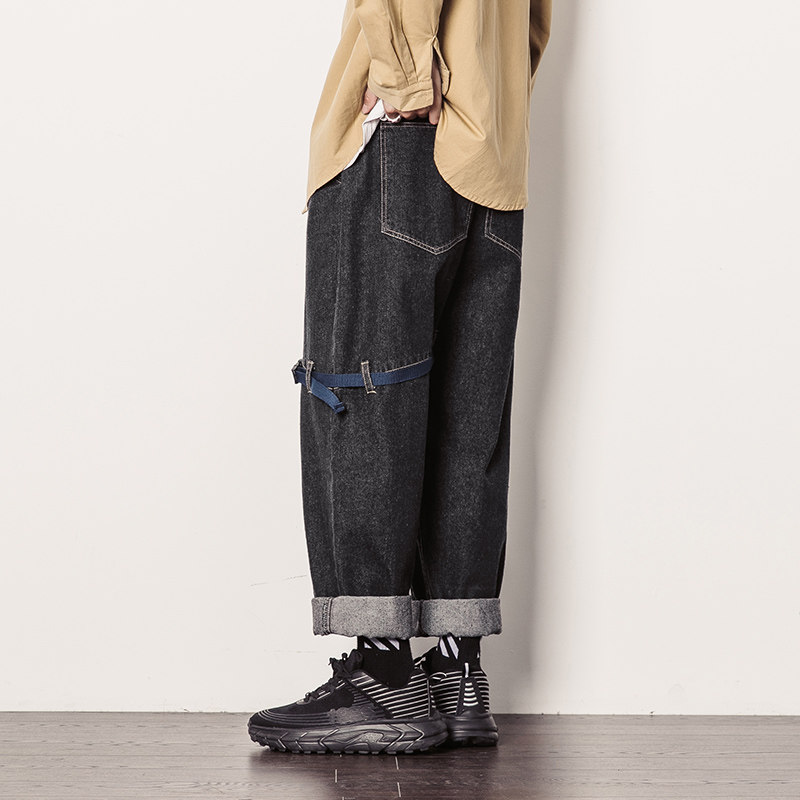 Fat Japanese functional straight jeans men's large size loose student bf nine-point pants tide brand wide-leg pants harem pants