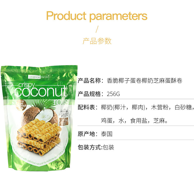Shanghai Costco tropical fields Fragrant Crisp Coconut Egg Rolls Coconut Milk Sesame Egg Crisp Rolls 265g