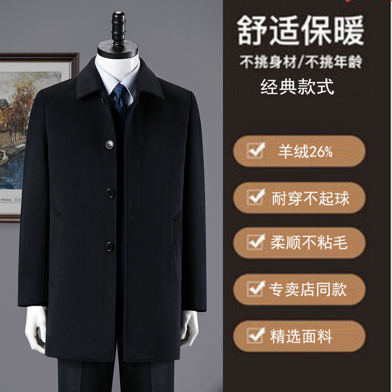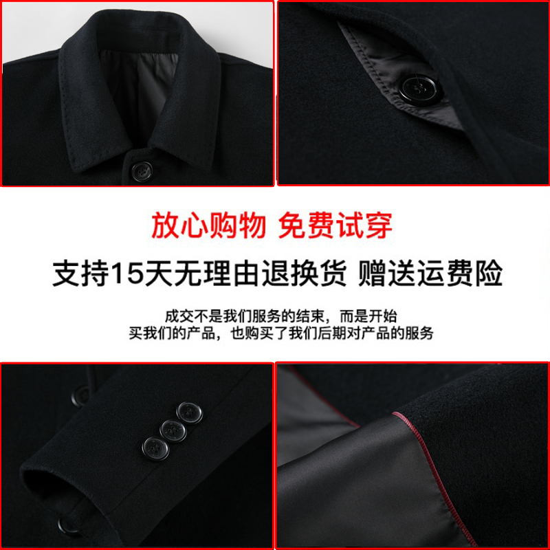 High-end dad assembled autumn winter middle-aged men cashmere coat wool clothing thickened medium and long coat