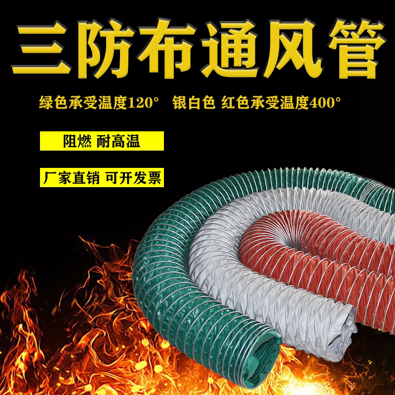 Three anti-cloth ventilation pipe flame retardant high temperature resistant canvas pipe smoke exhaust exhaust dust removal telescopic hose with steel wire ventilation pipe