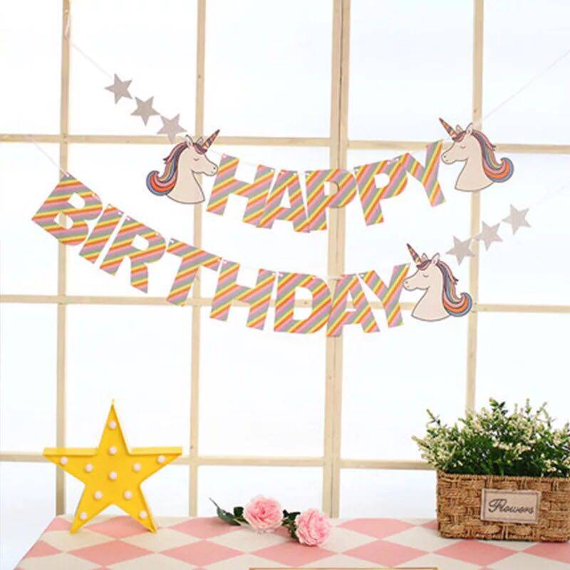 Unicorn Unicorn happy birthday pink blue gold color strip pull flag rain curtain (1mx2m) rain curtain