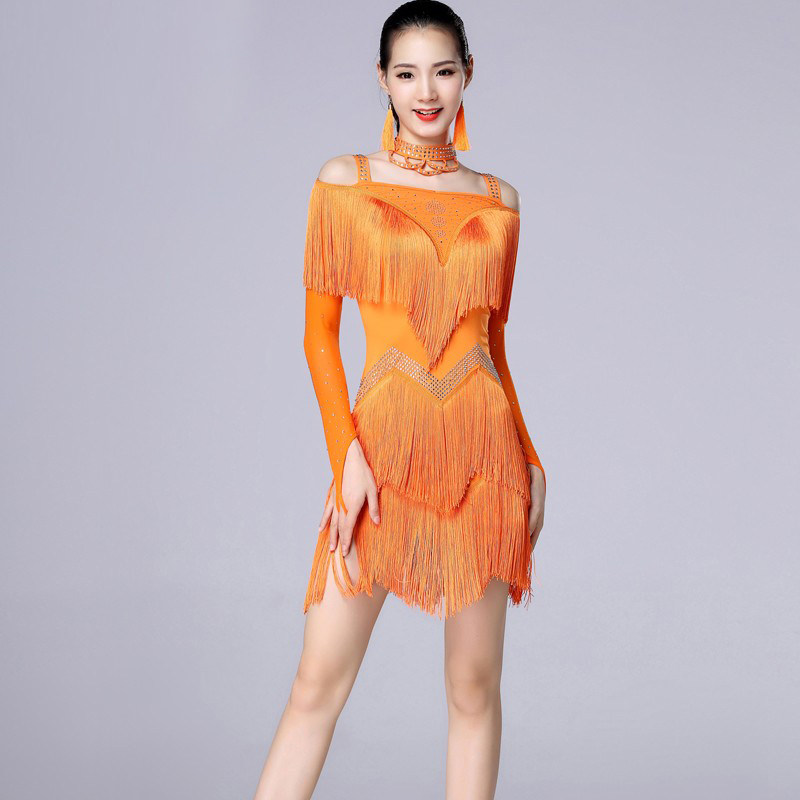 Sister Zicai Latin dance skirt professional competition performance out clothing female adult 2022 new long-sleeved tassel dress