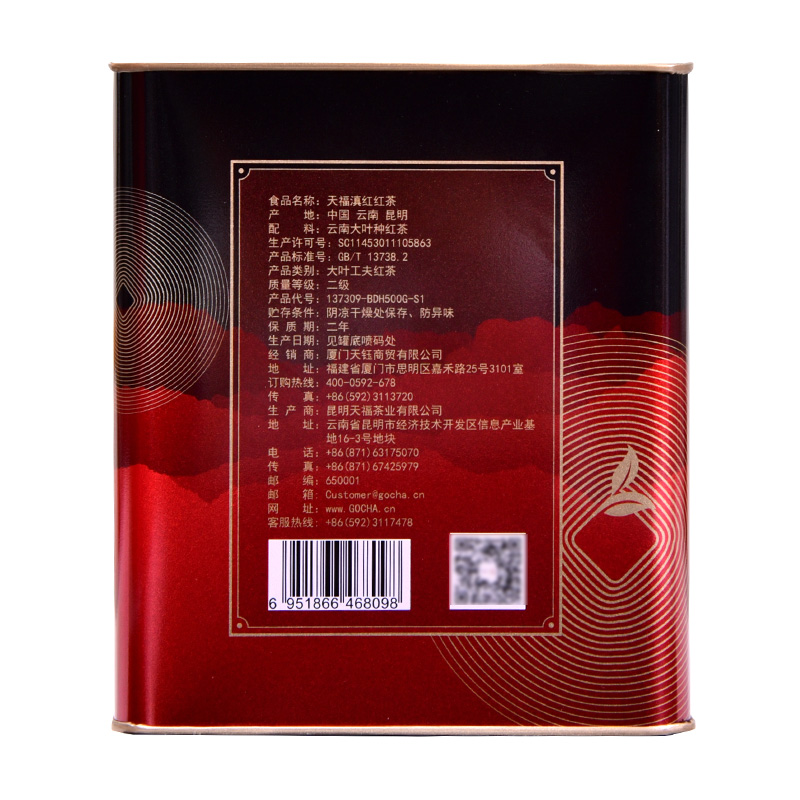 Tianfu Tea Tea Tianfu Yunnan Red Black Tea Zhengzong Giant Leaf Species Effort Black Tea Tea Iron Canned 500g