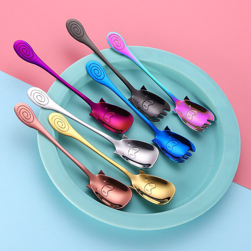 Cute pig one-piece fork spoon Creative 304 stainless steel spoon Net red coffee mixing spoon Household dessert fork spoon