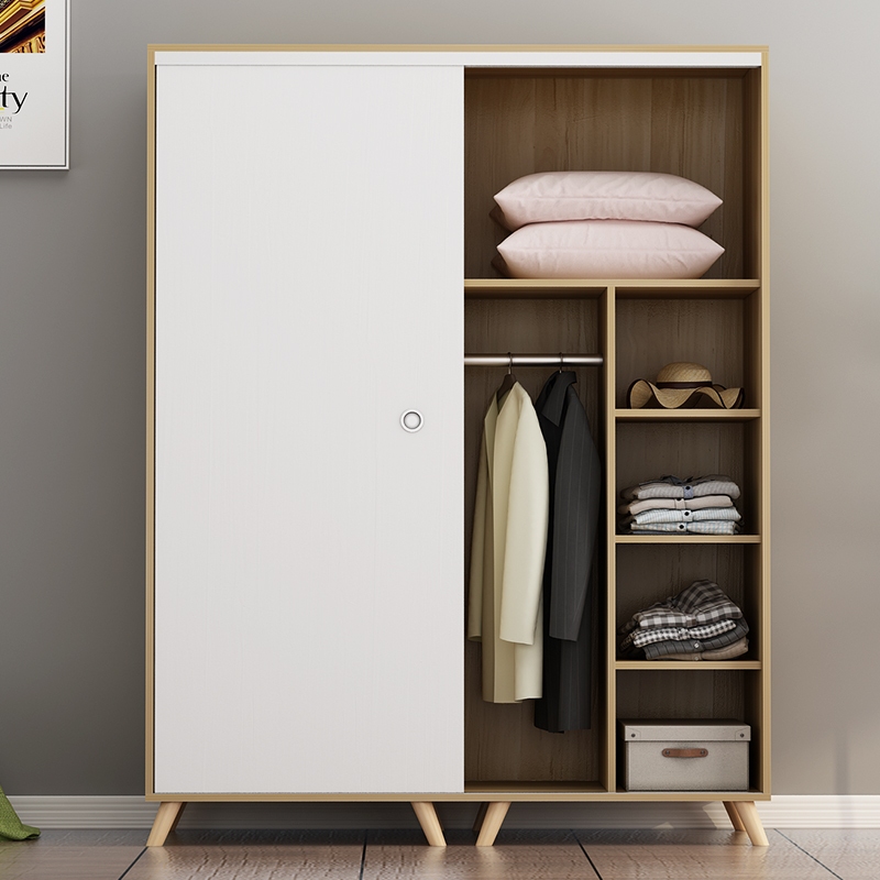Simple Modern Simple Wardrobe Sliding Door Economy Solid Wooden Board Furniture Assembly Bedroom 2 Door Cabinet
