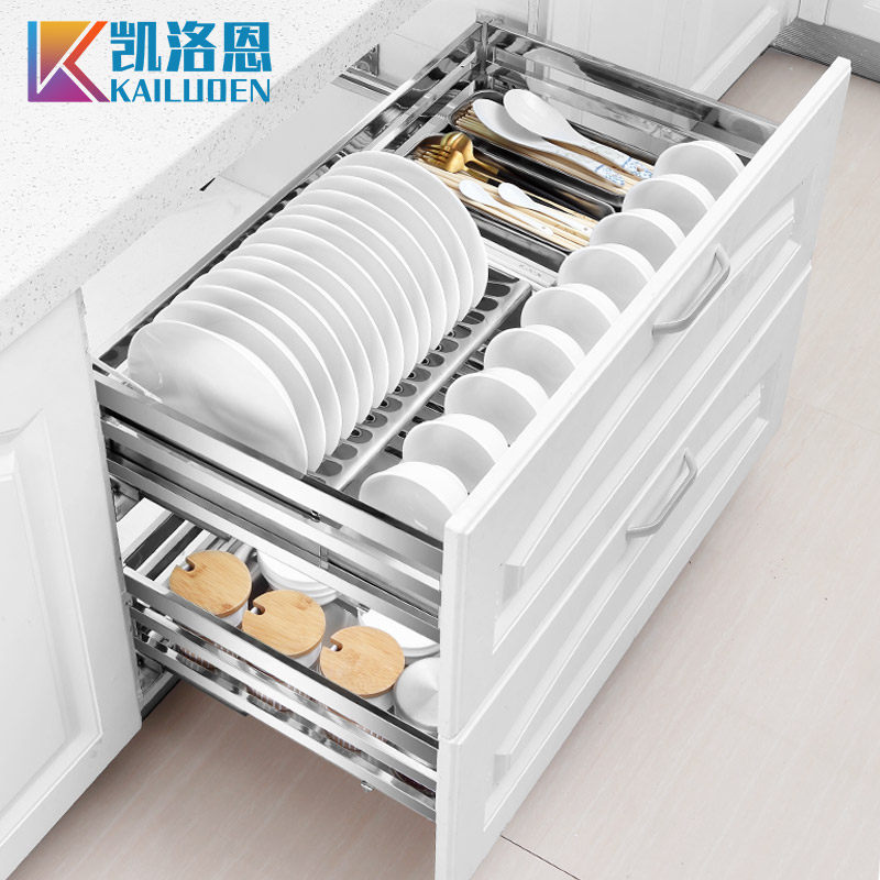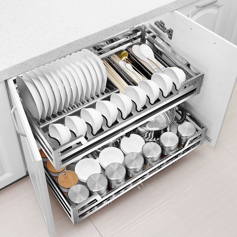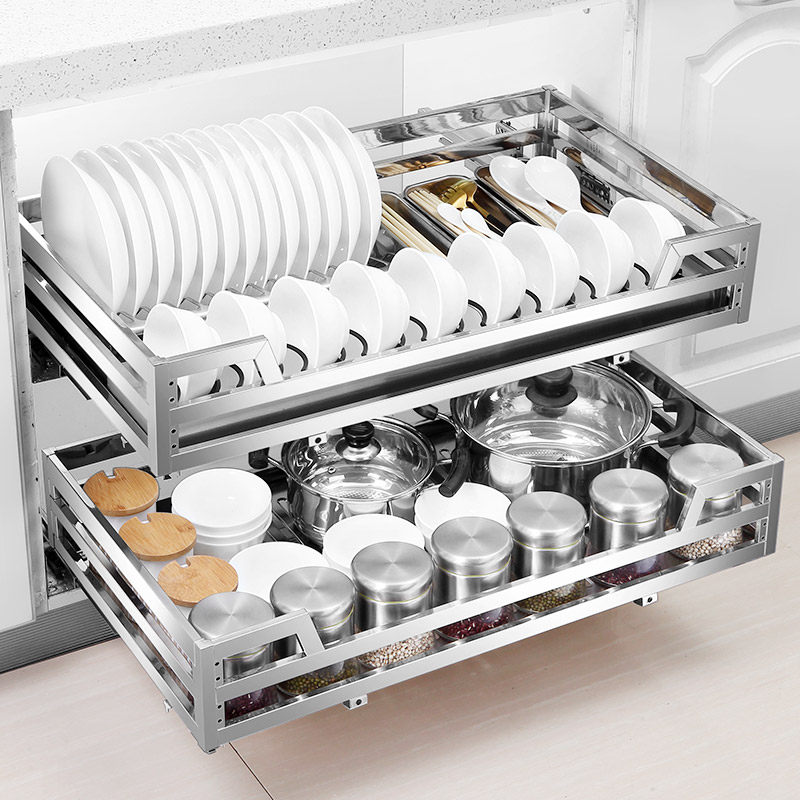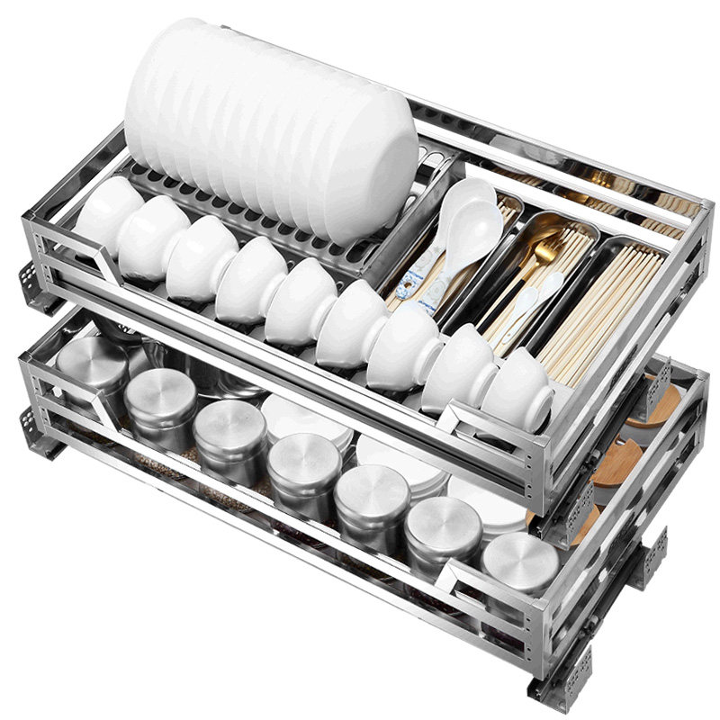 Kylorne La Basket Kitchen Cabinet Double Drawer Type Bowl Rack 304 Stainless Steel Dishes Basket Seasoning Square Tube Bowl Basket