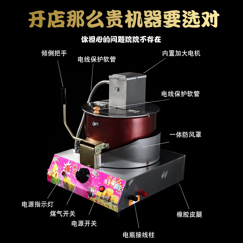 Commercial electric gas popcorn machine Full automatic popcorn machine swing stall with shape butterfly stirring popcorn pot