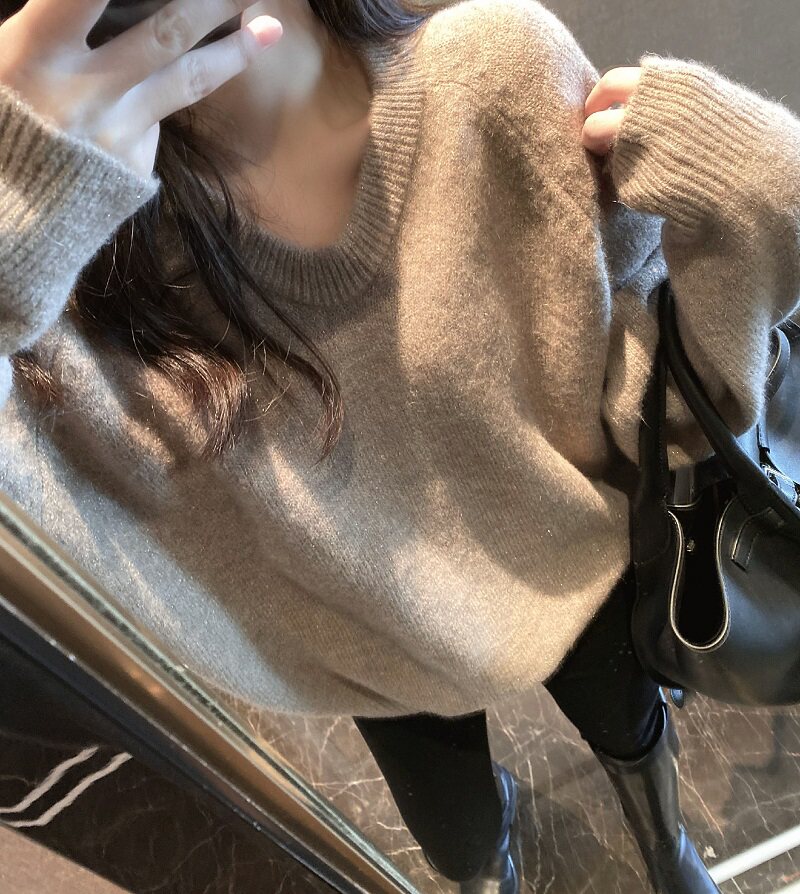 V-neck sweater women loose wear autumn and winter New Korean lazy style knitted base shirt blouse winter thickened