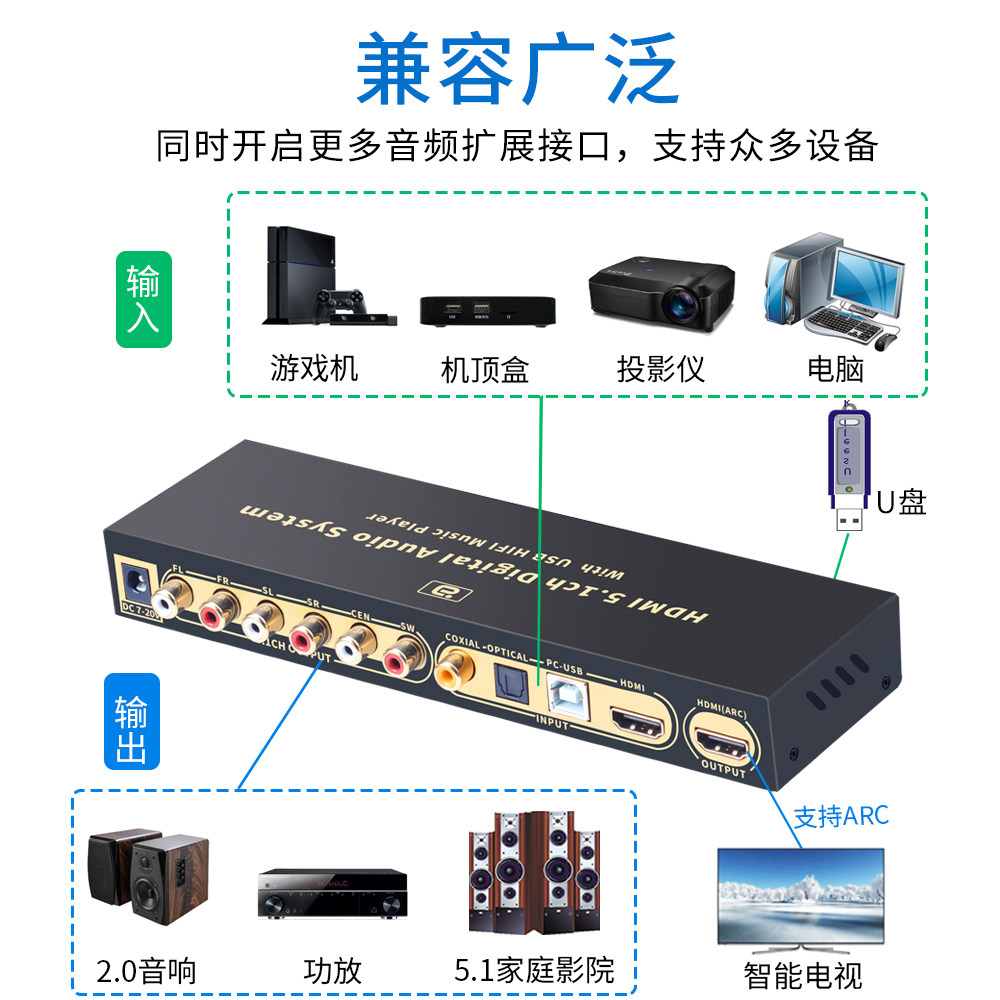HD820 DTS Dolby AC3 Atmos 5 1 channel audio decoder Bluetooth 5 0 Fiber optic USB disk coaxial DAC