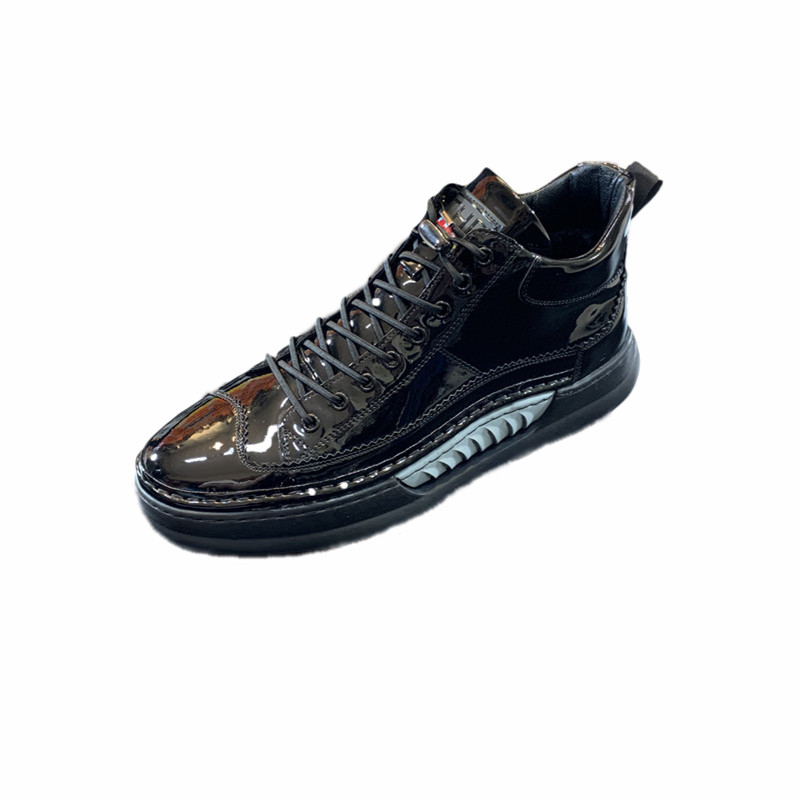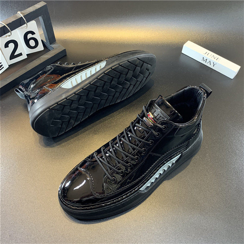 2020 autumn and winter new high tube patent leather men's shoes plus velvet warm all-match increase Korean version of the board shoes vibrato the same tide shoes