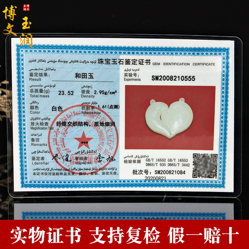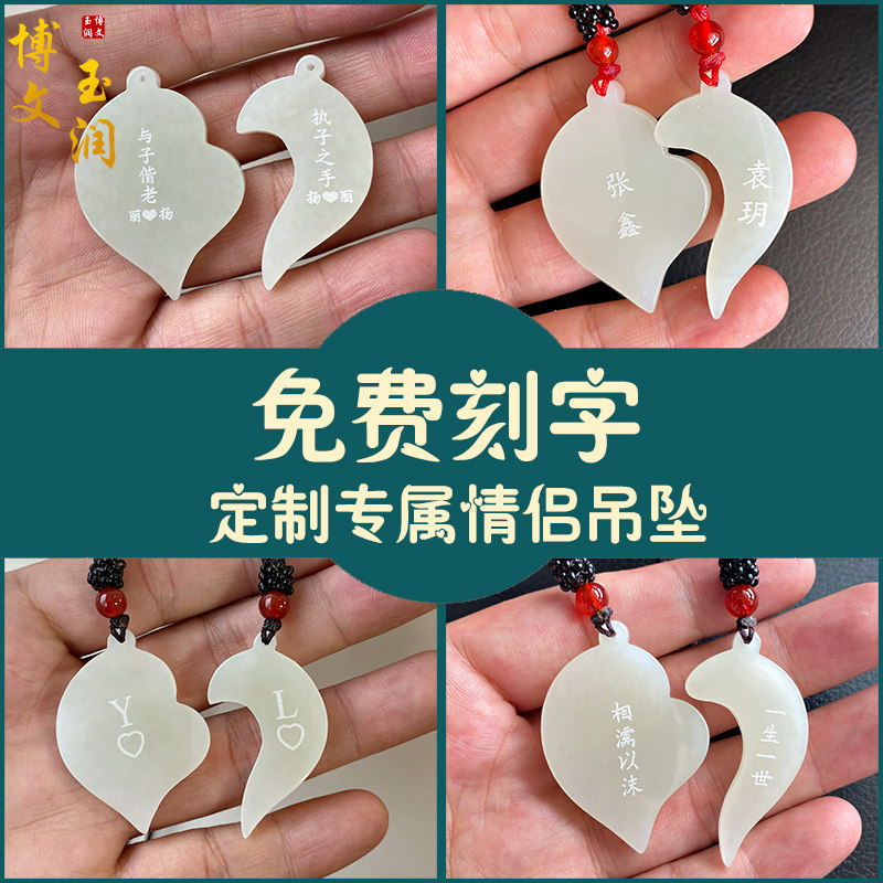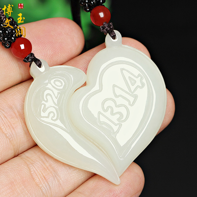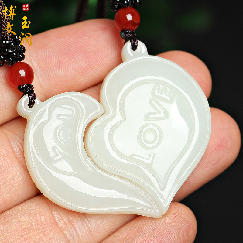 Hetian jade white jade heart-shaped pendant couple jade jewelry men and women loveyou5201314 love object
