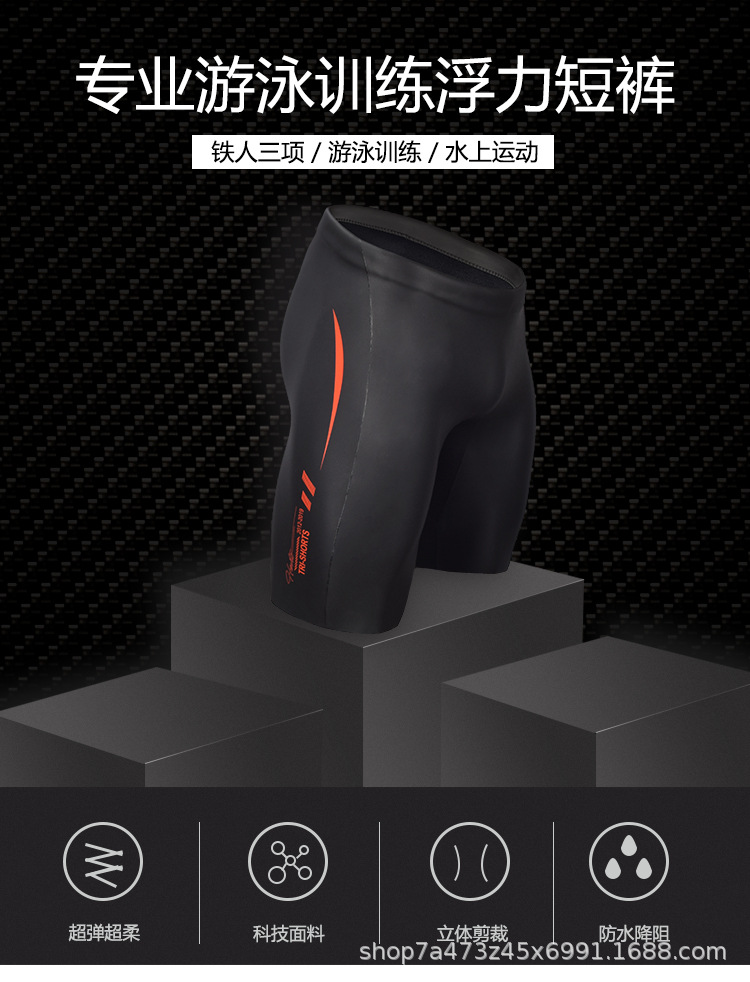 Swimming five-point pants competition training swimming trunks for men and women large buoyancy light leather shorts Forum fitness flax mold every day
