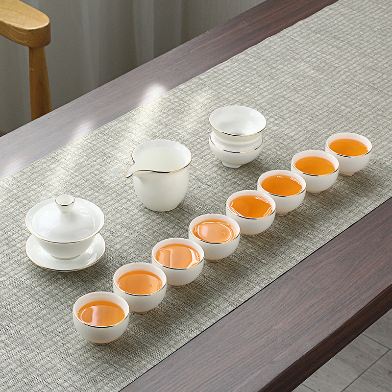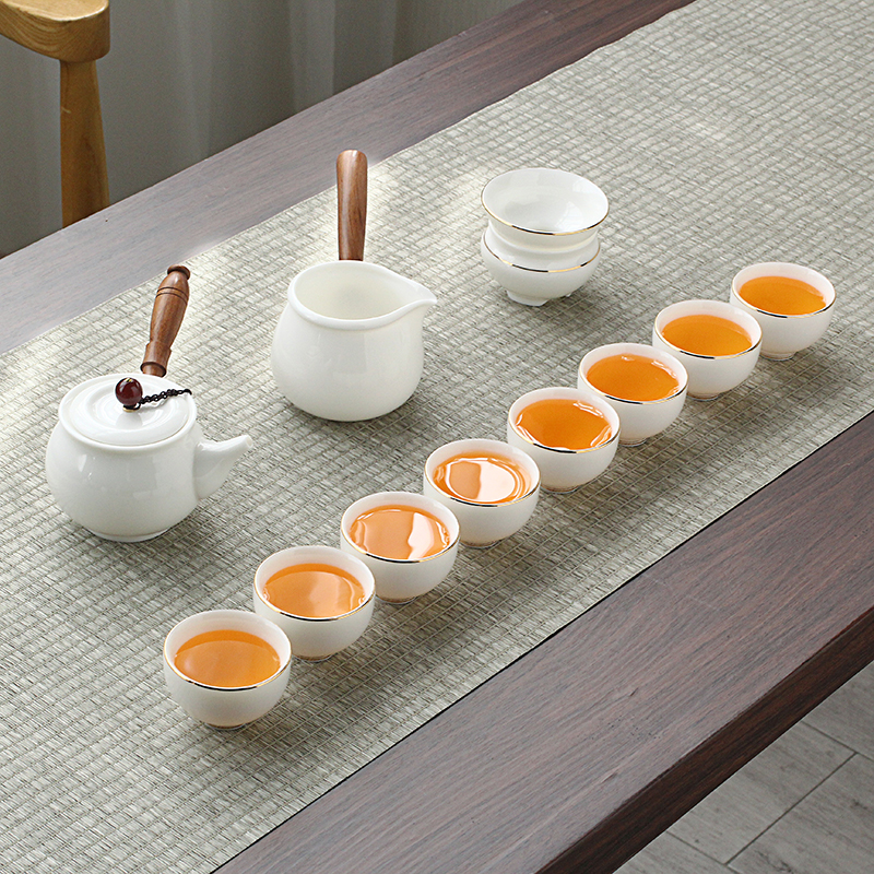 Tang Artisanal Goat Fat Jade Porcelain Defied White Porcelain Kung Fu Tea Suit Home Drinking Tea Ceramic Minimalist Tea Cup Teapot-Taobao