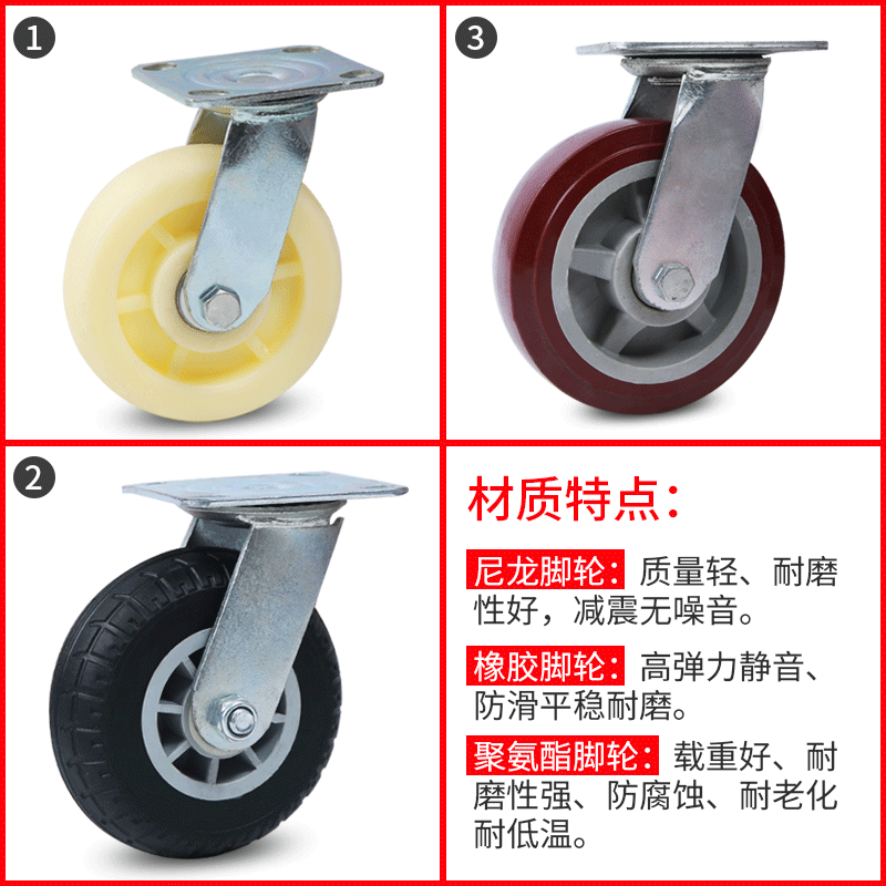 6 Inch Nylon Heavy Universal Wheels 4 5 Inch Castors Silent Industrial Rubber Abrasion Resistant Wheels With Brake-Taobao