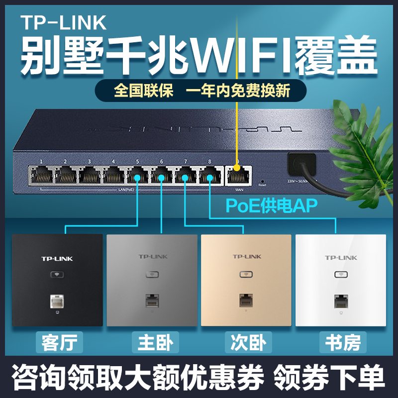 TP-LINK one thousand trillion AP Panel Full house wifi coverage Type 86 Entrance Wall Type POE Powered Wall Tplinks Router All5G Dual Frequency High Speed 1 Tug Family Networking Kit