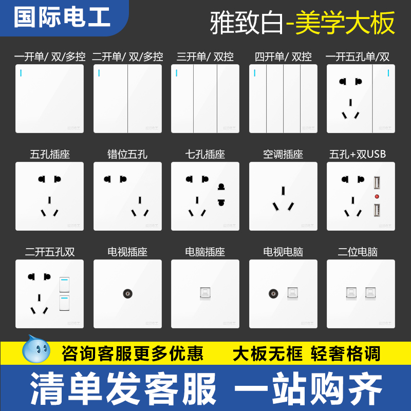 International Electrician 86 Concealed Ivory White panel 23 socket 10A Five-hole socket Power plug 5-hole socket