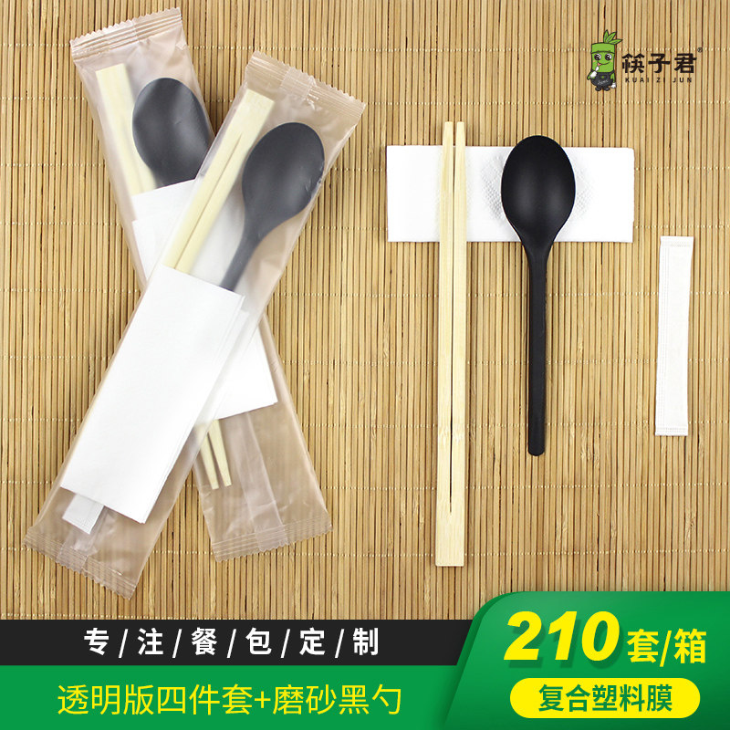 Disposable chopsticks four pieces of external delivery fast food transparent suit Four-in-one chopstick long spoon toothpick custom logo