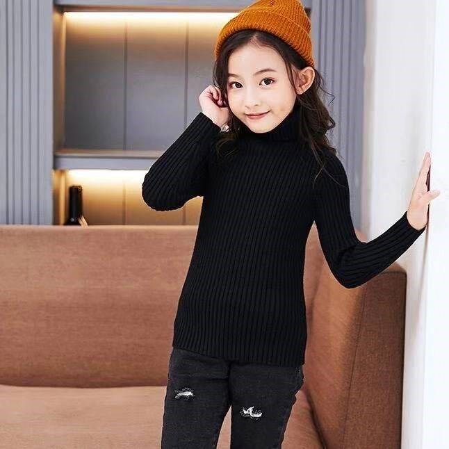 Girls and boys turtleneck sweater plus velvet thick middle and big children's children's autumn and winter girls solid color all-match knitted bottoming shirt