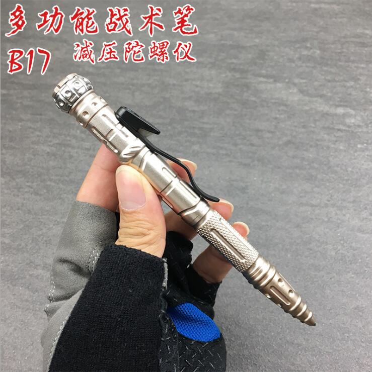 Gyro tactical pen outdoor portable multi-function defense pen tungsten steel head LED lighting decompression artifact function tool