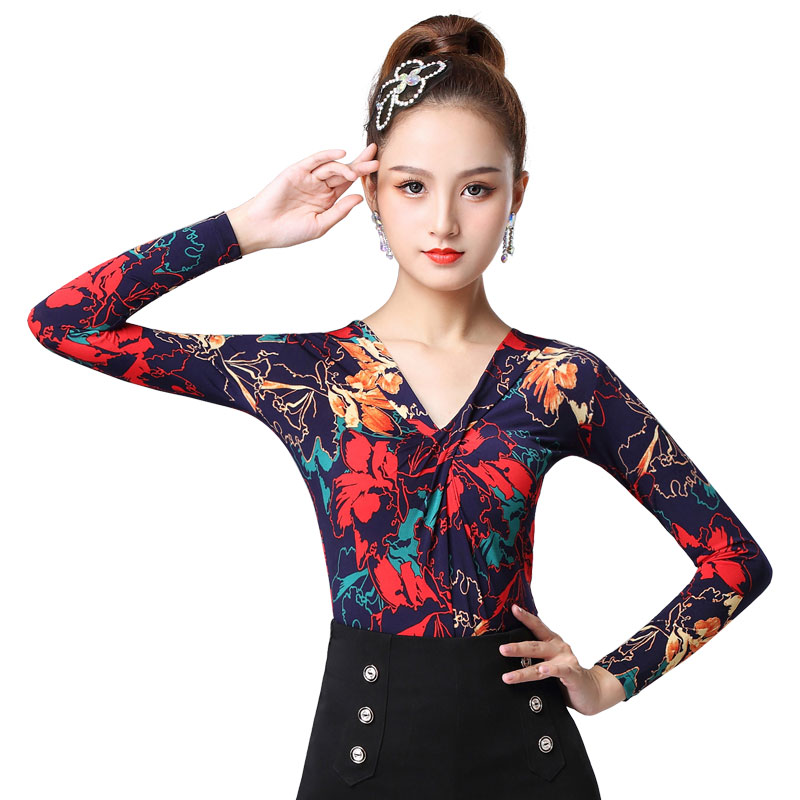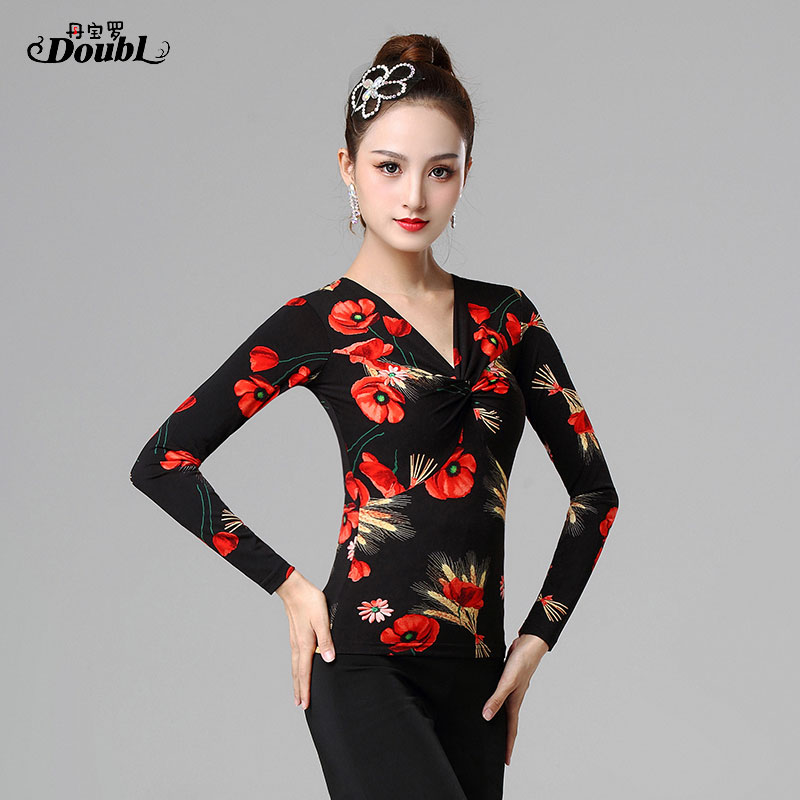 Danbaoluo Latin dance top long-sleeved women's national standard dance practice clothing ballroom dance clothing square dance small shirt