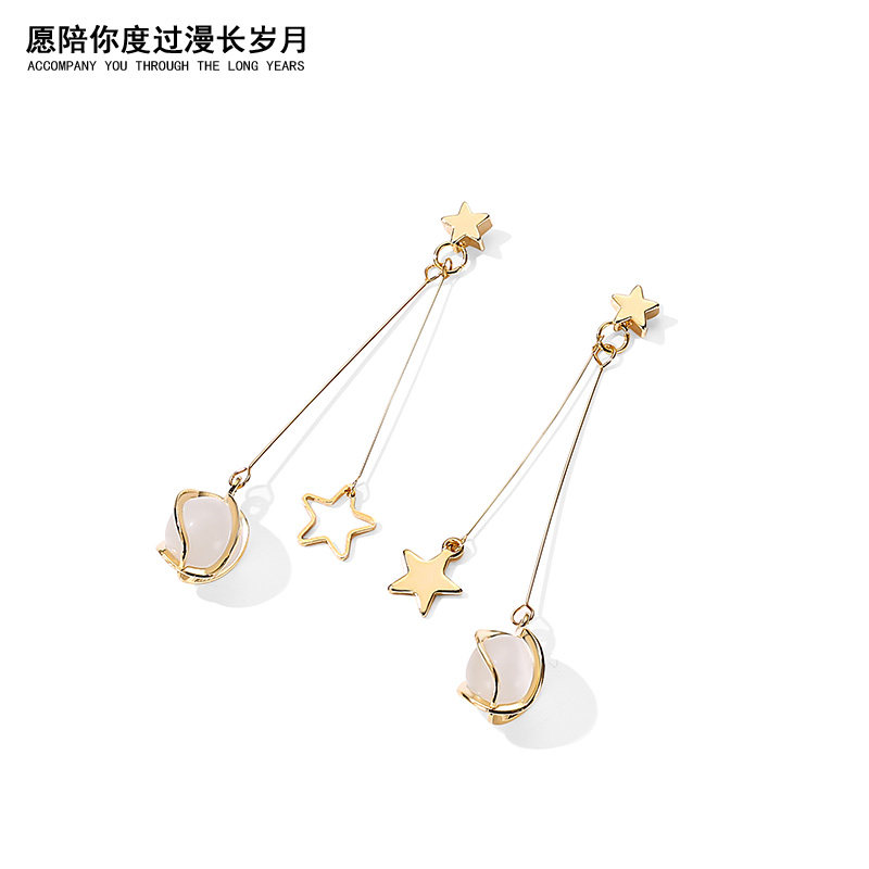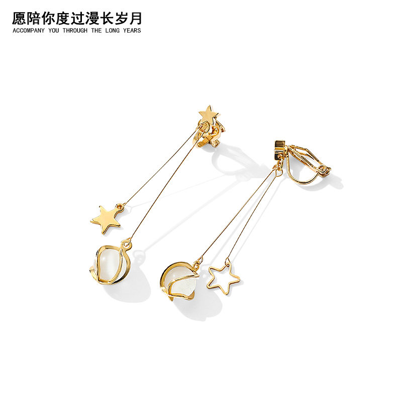 Gold (silver needle) five-pointed star opal earrings gold (cushion ear clip) five-pointed star opal gold (mosquito coil ear clip) five-pointed star opal