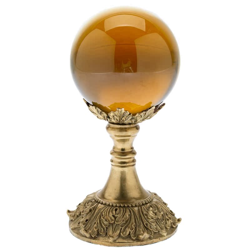 Yellow crystal ball ornaments Home Feng Shui living room lucky transfer crystal plus copper white crystal glass high-grade translucent