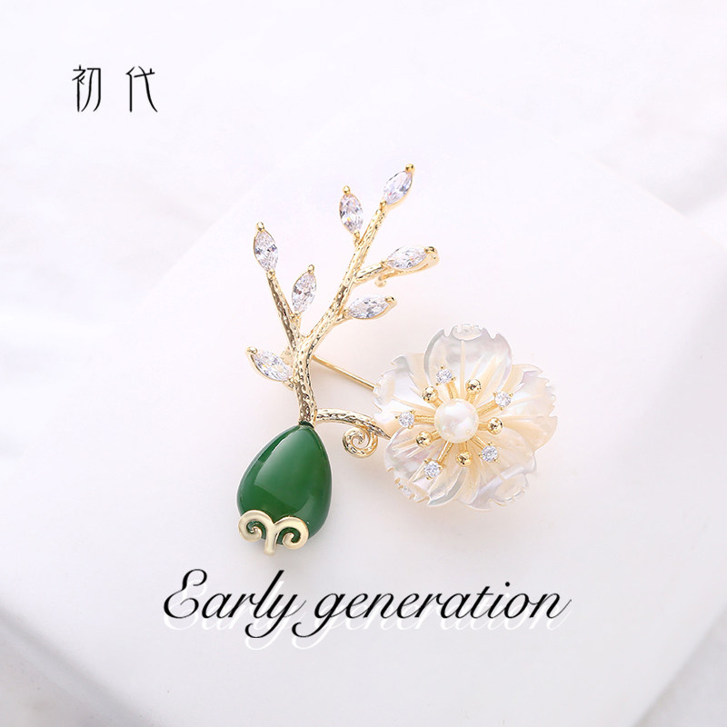 Special high-end corsage female natural shell branch vine flower brooch luxury fashion atmosphere coat pin