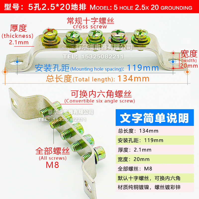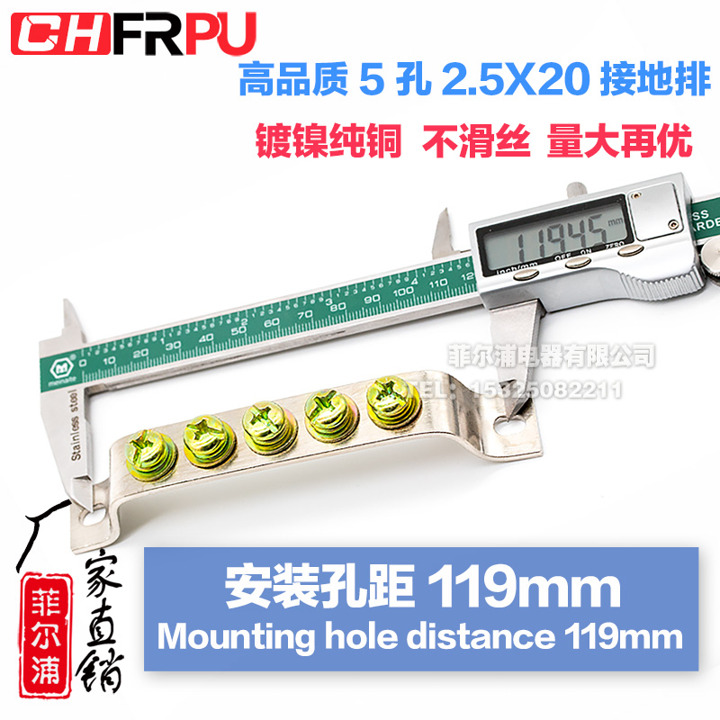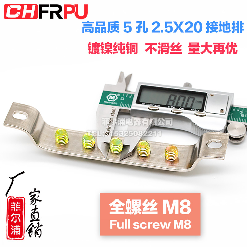 5-hole ground row 2 5 * 20mm ground copper bar grounding wire terminals full M8 ground row wiring terminal electric box copper bar