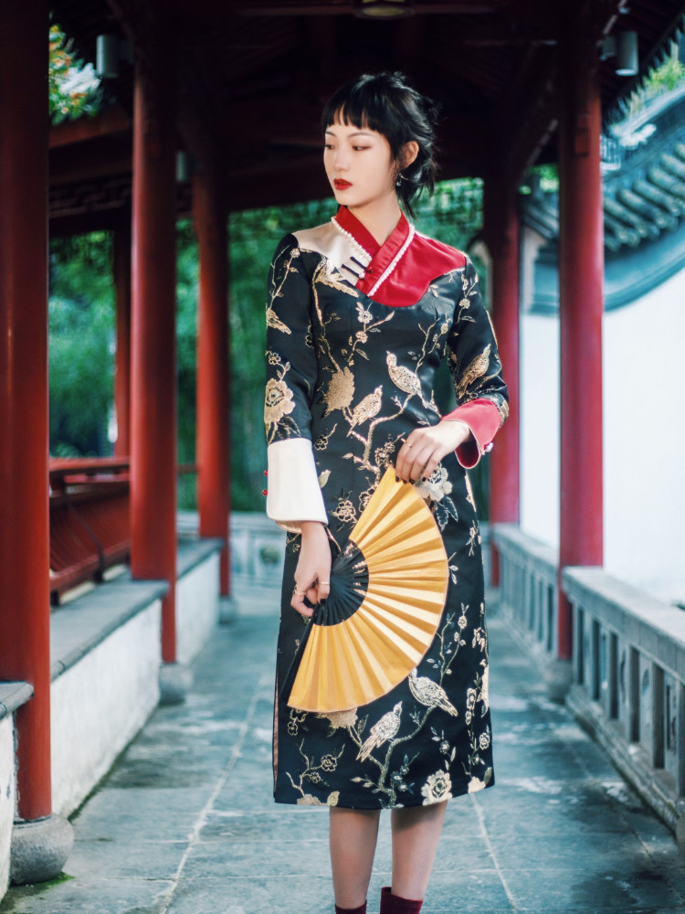The retro style of the wind,A long flag robe.