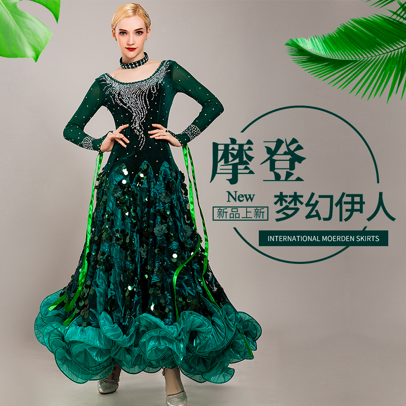 2022 new Moden dance costumed social dance performance out of the country's national standard dress waltz dance dress bronzes