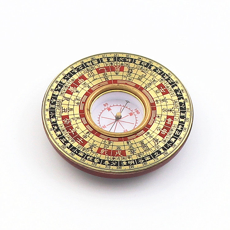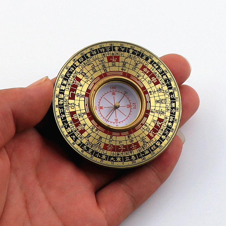 Antique round 2 inch yellow concave word integrated compass compass compass Feng Shui plate pure copper
