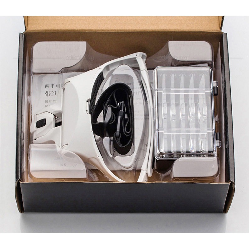 Foreign Trade Factory Direct sales 5 pieces of lenses Double LED light glasses White Wearing Magnifier 5 Magnification B1