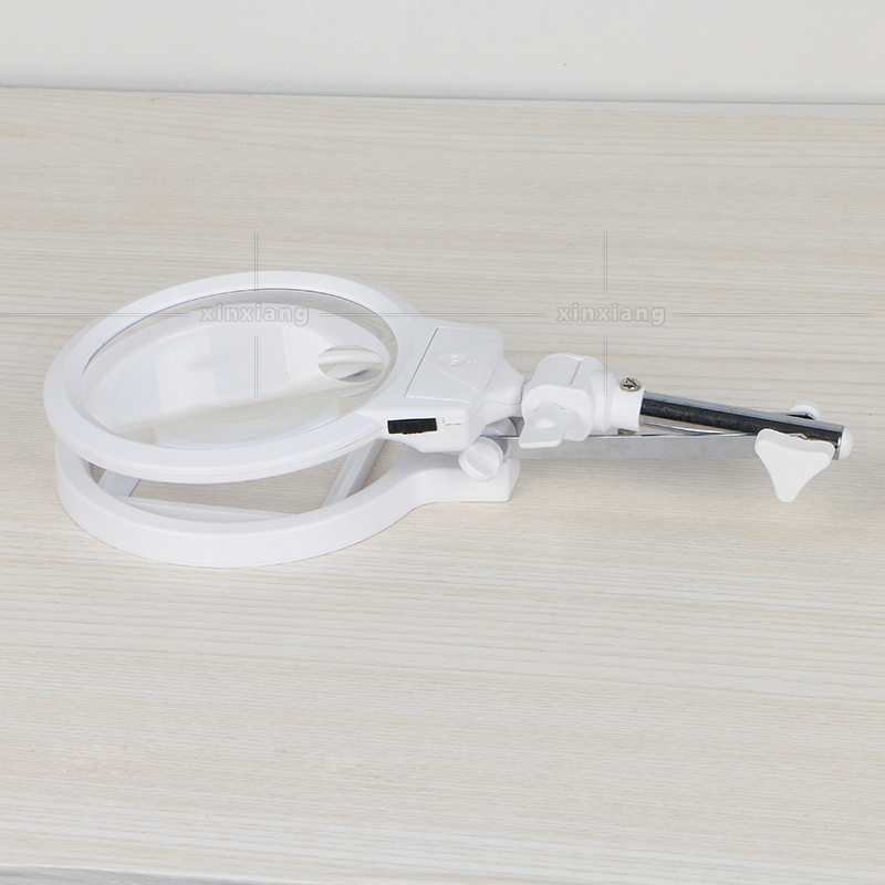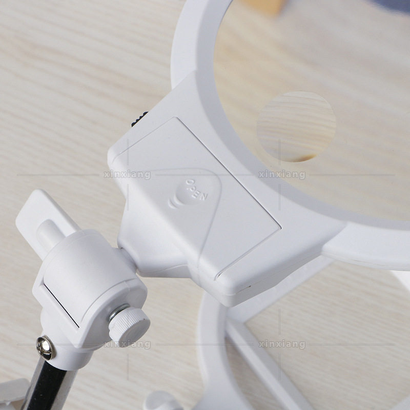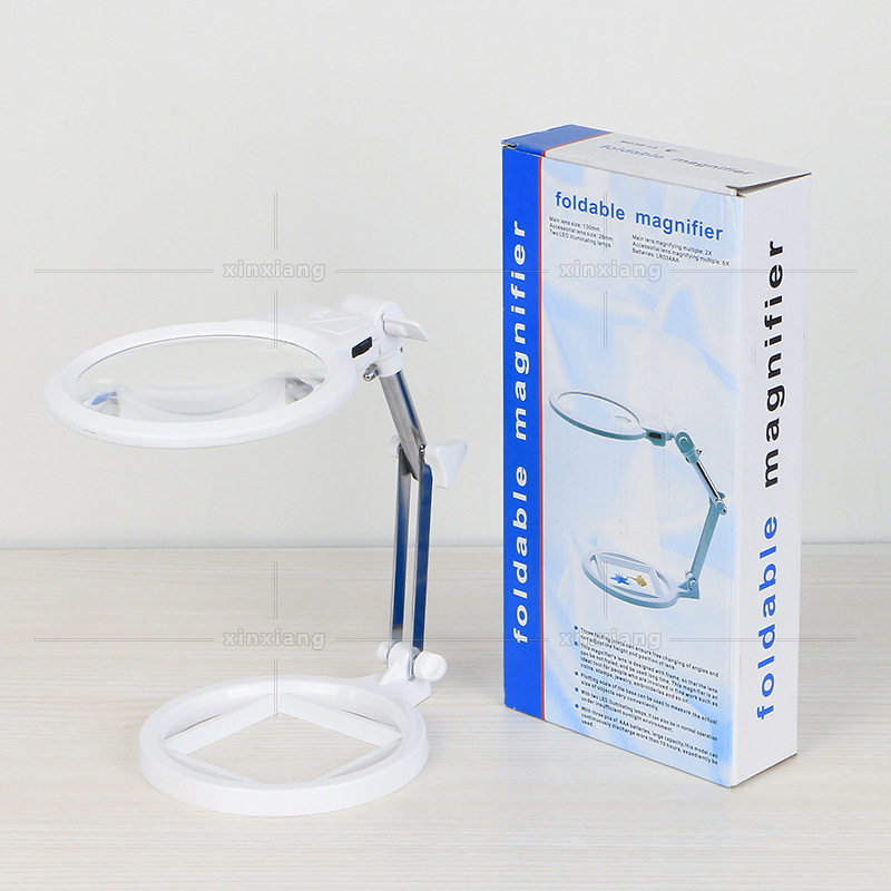 Factory direct sales heat pin LED with primary-secondary mirror desktop magnifying glass folding table lamp metal bracket scale magnifier