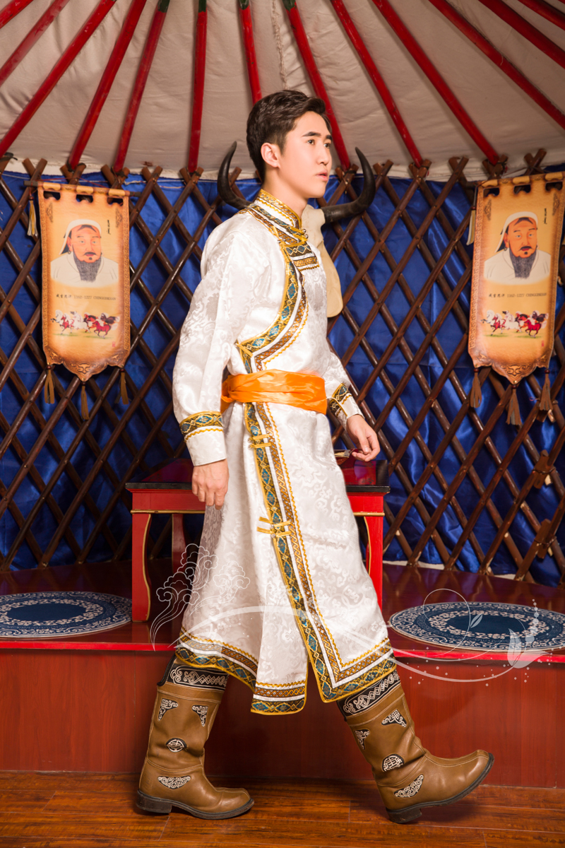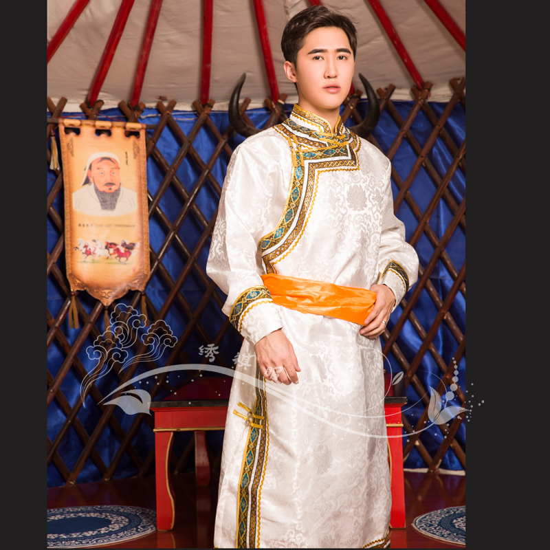 Mongolian clothing men's new national clothes long white Mongolian robes Mongolian performances dance clothes hot sell