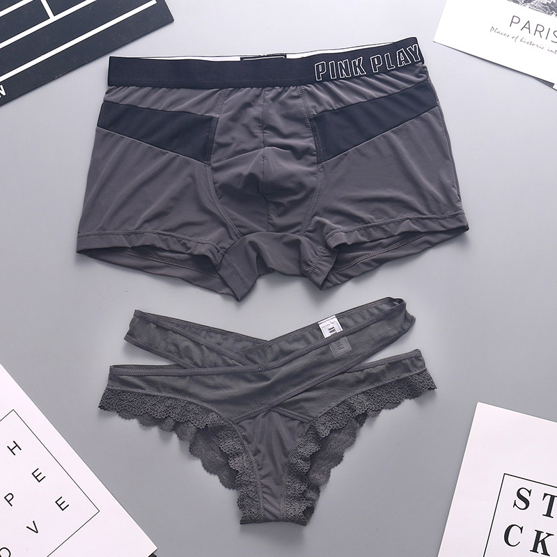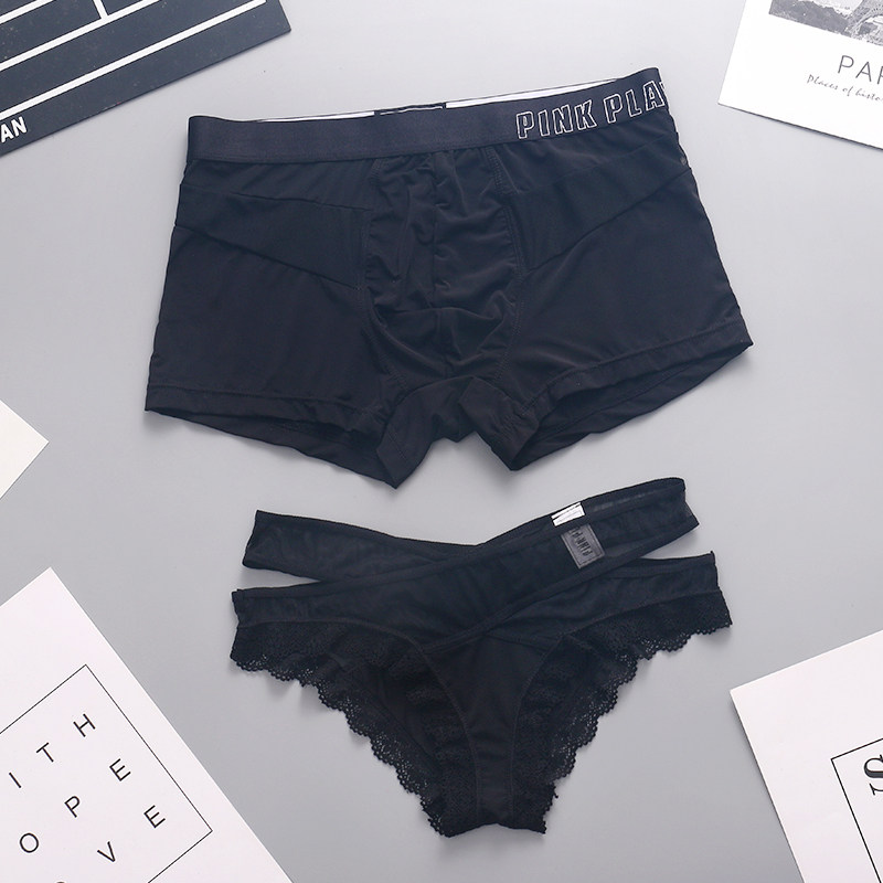 Couples panties ins Hong Kong counter ice silk cute creative sexy seduction lingerie men and women hot lace set