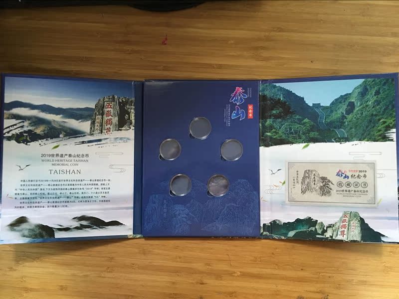 2019 Taishan commemorative coin packaging gift Book Taishan 5 yuan coins special collection Book luxury and thick card booklet 5 pieces