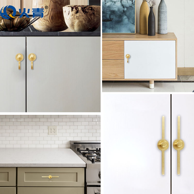 Fire Green Creative Bronze Handle Pure Brass Brass Solid Drawer cabinet door handle Light and luxurious Nordic Single-hole American pull