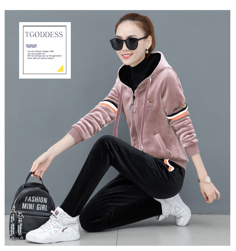 2021 new fashion double-sided gold velvet sports suit women's autumn and winter thickened fleece sweater casual clothes two-piece set