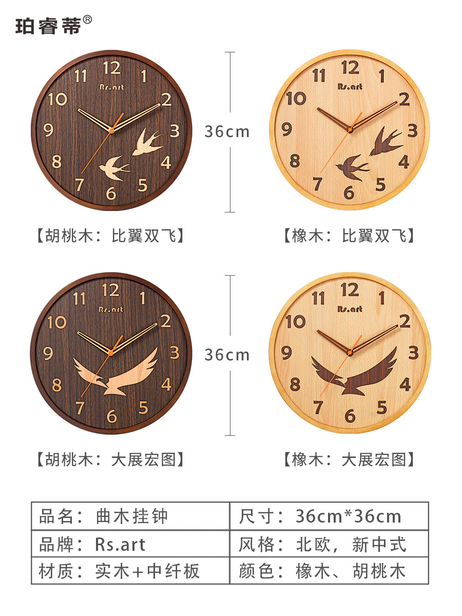 Wall clock Living room household new Chinese style simple Nordic style Modern light luxury wall clock hanging watch personality creative mute